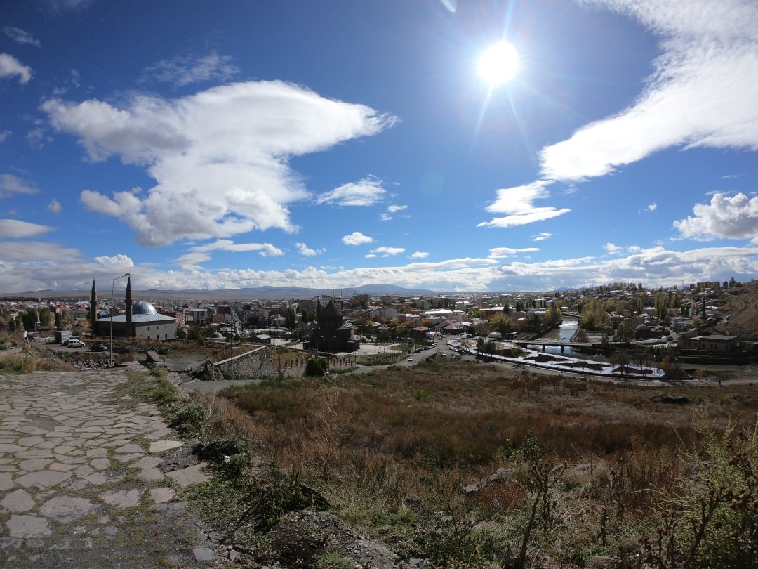 Ben camileri gezinirken yukarıdan heybetiyle beni izleyen Kars Kalesi kulağıma fısıldıyor ve yanına çağırıyordu. Sırtımdaki çantamı bir yere bırakmamış olduğum için taa en üste kadar onu da taşımak zorunda kaldım. Kalenin üzerinden tüm Kars’ı görmek mümkün.